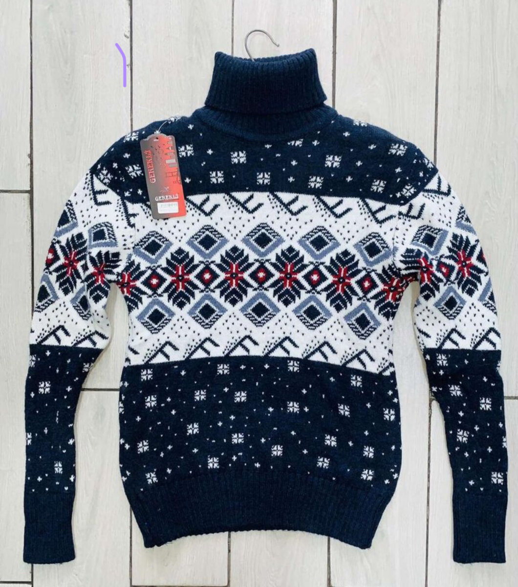 Зимовий новорічний светр зі сніжинками 42-46 (синій)